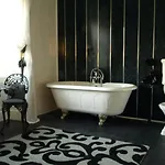 Badeværelset indeholder separat toilet, et badekar og en bruser.